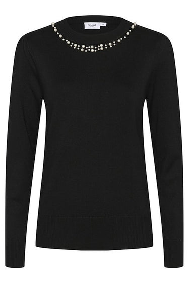 Fin enkel cardigan fra Saint Tropez med lange ærmer og rund hals med smukke perler.