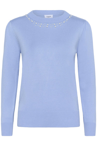 Fin enkel cardigan fra Saint Tropez med lange ærmer og rund hals med smukke perler.