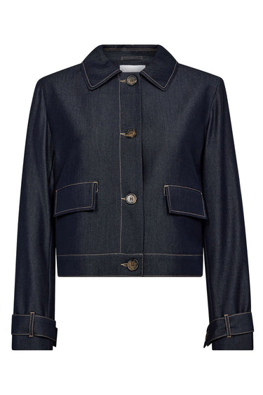 OBS! Fjernlager. Levering kan blive forlænget med 2-3 dage, hvis varen ikke findes i vores butik lige nu.Flot denim jakke fra Co'couture med lange ærmer, skjortekrave i halsen og lommeflapper i siderne.Jakken har også en cropped længde, kontrastfarvet syninger og knaplukning langs fronten.