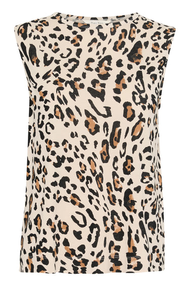 OBS! Fjernlager. Levering kan blive forlænget med 2-3 dage, hvis varen ikke findes i vores butik lige nu.Fin top fra Part Two med rund hals og et cool leopard print i naturlige farver.
