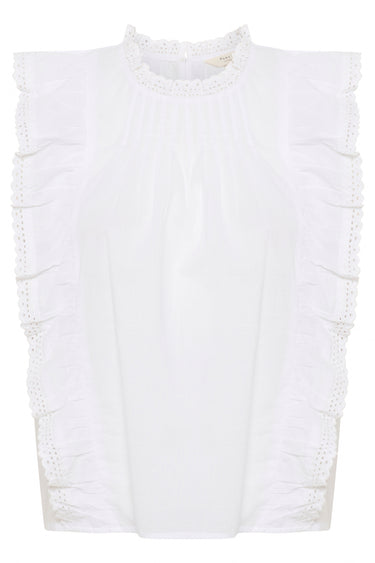 OBS! Fjernlager. Levering kan blive forlænget med 2-3 dage, hvis varen ikke findes i vores butik lige nu.Skøn top fra Part Two med rund hals, en afslappet silhuet og de flotteste broderet flæser.