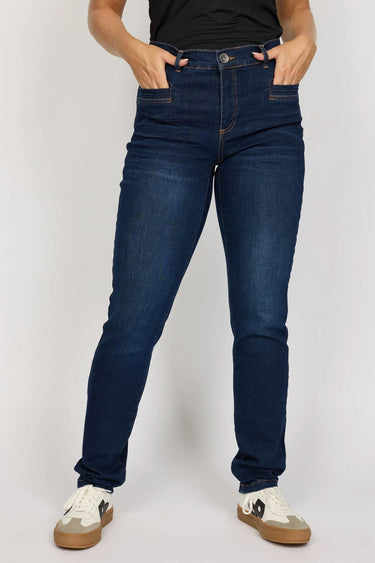 OBS! Fjernlager. Levering kan blive forlænget med 2-3 dage, hvis varen ikke findes i vores butik lige nu.Super flotte jeans fra 2-Biz med en helt klassisk vask og fine detaljer ved forlommerne.