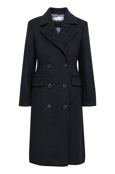 OBS! Fjernlager. Levering kan blive forlænget med 2-3 dage, hvis varen ikke findes i vores butik lige nu.Flot frakke fra InWear med lange ærmer, v-udskæring i halsen med en klassisk krave og lommeflapper i siderne.Frakken har også store knapper langs fronten og en feminin silhuet.