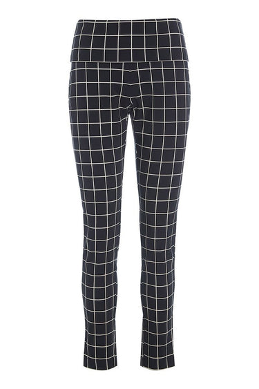 OBS! Fjernlager. Levering kan blive forlænget med 2-3 dage, hvis varen ikke findes i vores butik lige nu.Meget behagelige og smarte bukser fra Bitte Kai Rand med grafisk sort/hvid tern. Bukserne er tætsiddende, og der er stretch i stoffet, hvilket sikrer god bevægelighed. Den brede linning kan trækkes op over maven eller foldes ned for en almindelig taljehøjde.