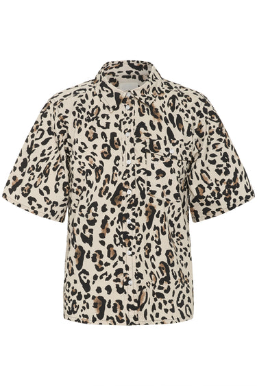 OBS! Fjernlager. Levering kan blive forlænget med 2-3 dage, hvis varen ikke findes i vores butik lige nu.Smart skjortebluse fra Part Two med korte brede ærmer, krave i halsen og et cool leopard print i naturlige farver.