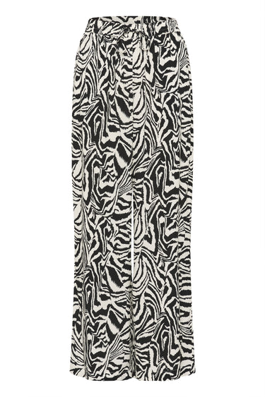 OBS! Fjernlager. Levering kan blive forlænget med 2-3 dage, hvis varen ikke findes i vores butik lige nu.Lækre bukser fra Part Two med en bred elastikkant og bindesnor i taljen, vidde i benene og et flot print.