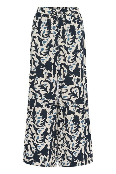 OBS! Fjernlager. Levering kan blive forlænget med 2-3 dage, hvis varen ikke findes i vores butik lige nu.Lækre bukser fra Part Two med en bred elastikkant og bindesnor i taljen, vidde i benene og et flot print.