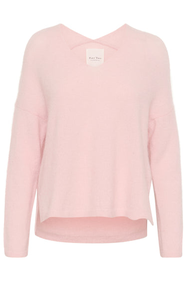 OBS! Fjernlager. Levering kan blive forlænget med 2-3 dage, hvis varen ikke findes i vores butik lige nu.Blød og lækker strik fra Part Two med lange ærmer, v-udskæring i halsen og små slidser i siderne.