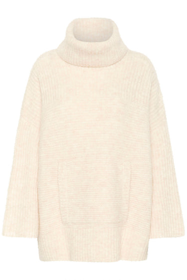 OBS! Fjernlager. Levering kan blive forlænget med 2-3 dage, hvis varen ikke findes i vores butik lige nu.Lækker strik fra Part Two med en stor rullekrave i halsen, en stor lomme på fronten og en dejlig løs silhuet.