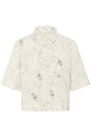 - OBS! Fjernlager. Levering kan blive forlænget med 2-3 dage, hvis varen ikke findes i vores butik lige nu.Flot skjortebluse fra Part Two med ½ lange brede ærmer, krave i halsen og smukke detaljer.
