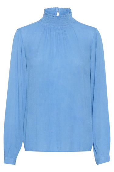 OBS! Fjernlager. Levering kan blive forlænget med 2-3 dage, hvis varen ikke findes i vores butik lige nu.Elegant bluse fra Kaffe med lange ærmer, høj hals og en afslappet silhuet.