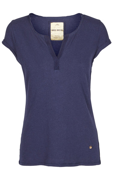 Fin basic T-shirt med rund hals samt snit fra Mos Mosh. Modellen har en lækker strækbar kvalitet og normal/tæt pasform. En perfekt basic t-shirt som er uundværlig i garderoben.
