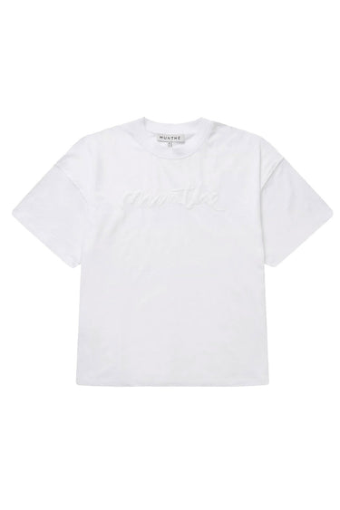 OBS! Fjernlager. Levering kan blive forlænget med 2-3 dage, hvis varen ikke findes i vores butik lige nu.Lækker blød tee fra Munthe med korte ærmer, rund hals og et smart broderet MUNTHE logo på brystet.