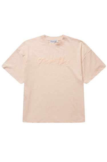 OBS! Fjernlager. Levering kan blive forlænget med 2-3 dage, hvis varen ikke findes i vores butik lige nu.Lækker blød tee fra Munthe med korte ærmer, rund hals og et smart broderet MUNTHE logo på brystet.