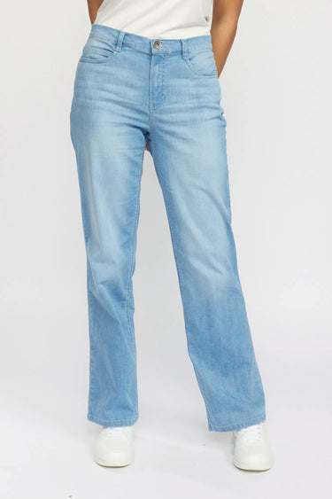 OBS! Fjernlager. Levering kan blive forlænget med 2-3 dage, hvis varen ikke findes i vores butik lige nu.Smarte jeans fra 2-Biz med vidde i benene, klassiske lommer og en flot blå vask.