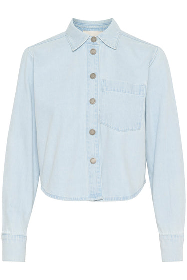 OBS! Fjernlager. Levering kan blive forlænget med 2-3 dage, hvis varen ikke findes i vores butik lige nu.Smart denim skjorte fra My Essential Wardrobe med lange ærmer, en cropped længde og en fin lomme på brystet.