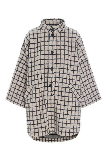 OBS! Fjernlager. Levering kan blive forlænget med 2-3 dage, hvis varen ikke findes i vores butik lige nu.Smuk anorak i en lækker ternet uldkvalitet og med et cool snit. Anorakken er rummelig og et smart alternativ til en traditionel frakke. En både komfortabel og elegant måde at holde sig varm på. Aorakken er uden foer.
