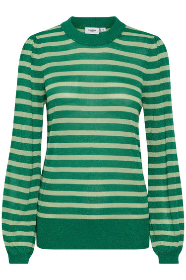 OBS! Fjernlager. Levering kan blive forlænget med 2-3 dage, hvis varen ikke findes i vores butik lige nu.Smart strik fra Saint Tropez med lange pufærmer, rund hals og et fint stribet mønster.