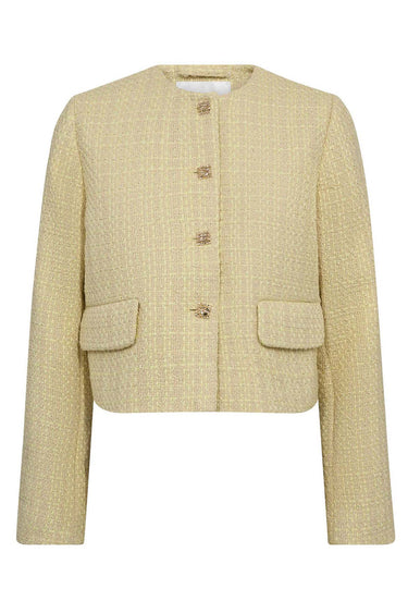 OBS! Fjernlager. Levering kan blive forlænget med 2-3 dage, hvis varen ikke findes i vores butik lige nu.Elegant boucle jakke fra Co'couture med lange ærmer, rund hals og fine lommeflapper i siderne.Jakken har også en smuk kvalitet og de flotteste knapper langs fronten.