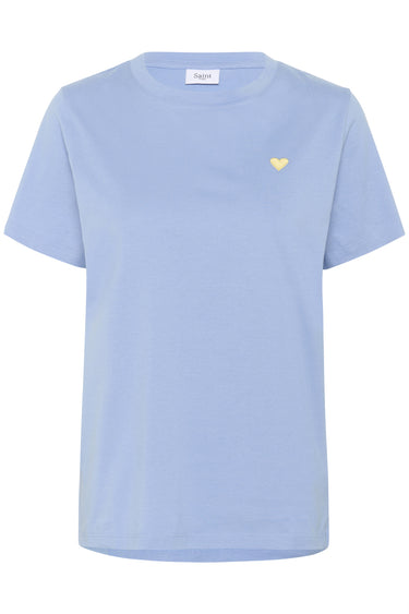 - OBS! Fjernlager. Levering kan blive forlænget med 2-3 dage, hvis varen ikke findes i vores butik lige nu.Sød tee fra Saint Tropez med korte ærmer, rund hals og et fint broderet hjerte på brystet.